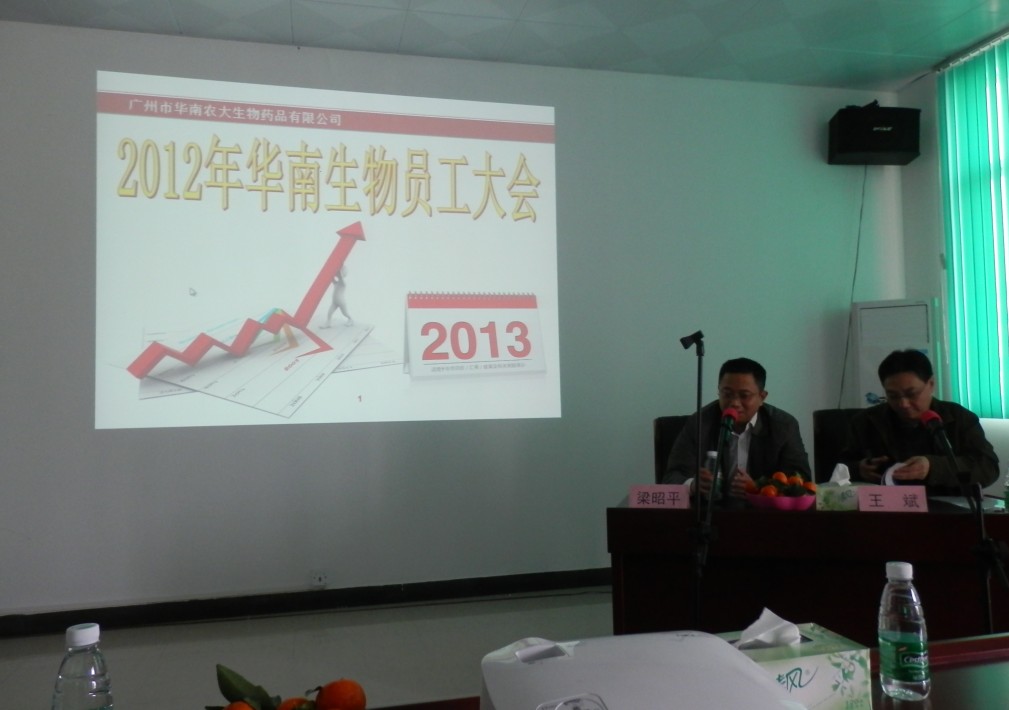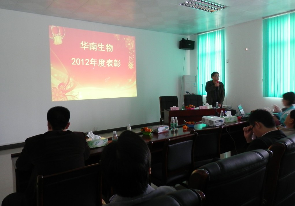 1月24日,華南生物2012年員工大會在辦公樓一樓會議室順利召開。王斌副總經(jīng)理主持了本次會議,梁昭平總經(jīng)理在會議上匯報了2012年度公司的經(jīng)營情況、主要亮點(diǎn)工作及主要完成工作內(nèi)容。梁總在現(xiàn)場講話中,感謝全體員工一年來對公司所做出的積極付出,充分肯定了華南生物員工在2012年里所取得的優(yōu)異成績,并為企業(yè)描繪發(fā)展藍(lán)圖,鼓勵大家共同努力,取得新的輝煌。在肯定上一年度工作成績的同時,提出了企業(yè)在發(fā)展上存在的問題與改進(jìn)辦法,展望未來一年的方向和目標(biāo),對新一年寄予了熱切的期盼。