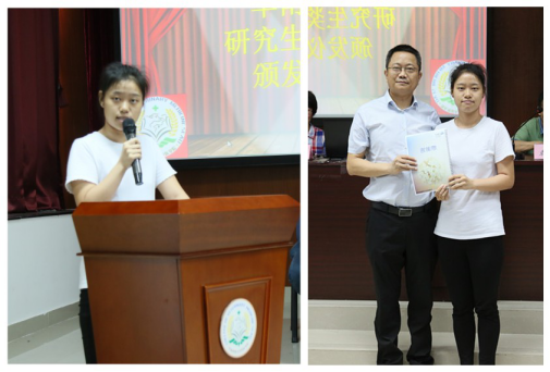 獲獎代表朱夢嬌同學(xué)發(fā)言,向華南生物表示敬意及感謝,承諾以后更加努力學(xué)習(xí),時刻鞭策自己,以取得更加優(yōu)異的成績并投桃報李。
