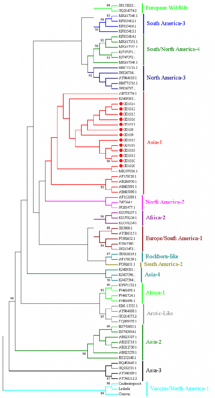當(dāng)下國內(nèi)寵物疫苗市場由進(jìn)口產(chǎn)品所主導(dǎo),但是合法注冊的進(jìn)口產(chǎn)品并不能滿足國內(nèi)需求。大多數(shù)犬用CDV進(jìn)口疫苗所包含的都是America-1型毒株,而國內(nèi)主要流行的是Asia-1型毒株。從進(jìn)化譜系分析上來看疫苗株America-1所在的分支與流行的Asia-1型毒株距離較遠(yuǎn),基因差異可能導(dǎo)致中和表位的顯著變化,從而可能導(dǎo)致疫苗免疫失敗。此外國外有研究報道CDV的South America-3型毒株仍可使接種過包含America-1型毒株疫苗的犬發(fā)病。由此可見符合國情的疫苗是才是CD防控的需求所在。